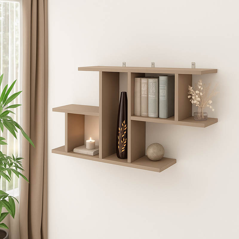 Ραφιέρα τοίχου Vertoura pakoworld σε μόκα απόχρωση 116x18.5x60cm