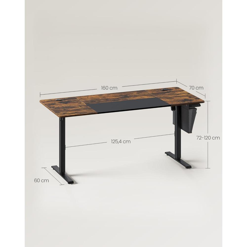 Songmics Μεταλλικό Ηλεκτρικά Ρυθμίζόμενο γραφείο 160 x 70 x 72-120 cm Ξύλινου Φινιρίσματος Χρώματος καφέ (LSD026X01V1) (SNGLSD026X01V1)