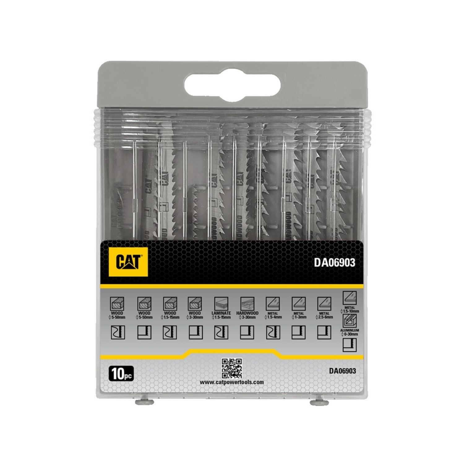 Το σετ CAT DA06903 περιλαμβάνει 10 λάμες σέγας με υποδοχή τύπου S, κατάλληλες για κοπή ξύλου και μετάλλου. Οι λεπίδες καλύπτουν μια ευρεία γκάμα εφαρμογών, από λεπτομερείς εργασίες με ακρίβεια μέχρι δυναμικές κοπές με σταθερότητα και ταχύτητα. Ο τροχισμός των δοντιών εξασφαλίζει αυξημένη απόδοση σε σχέση με τις φρεζαρισμένες λεπίδες, προσφέροντας καθαρές και αποτελεσματικές κοπές σε διάφορα υλικά.