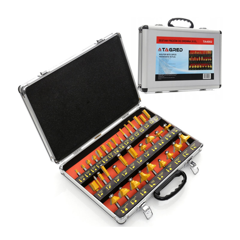 Το σετ, από την εταιρία TAGRED, χρησιμοποιείται ευρέως σε εργαστήρια ξυλουργικής που ειδικεύονται στην ακριβή επεξεργασία ξύλου. Οι κόπτες είναι τοποθετημένοι σε άξονα με διάμετρο 8 mm και επιτρέπουν την επεξεργασία υλικού με ακρίβεια. Οι 18 κόπτες έχουν ρουλεμάν για τη μείωση της τριβής και ένα πολύ σκληρό άκρο από χάλυβα υψηλής ταχύτητας HSS.