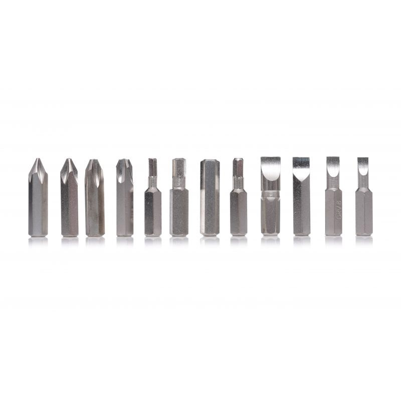 Το σετ, από την εταιρία Kraft&Dele, αποτελείται από ένα κρουστικό κατσαβίδι και μύτες, τοποθετημένα σε μεταλλική κασετίνα αποθήκευσης και μεταφοράς. Το κατσαβίδι, διαθέτει ρύθμιση της περιστροφής δεξιά/αριστερά, και είναι ιδανικό για γρήγορο και ασφαλές λύσιμο των κολλημένων, φραγμένων, σκουριασμένων, και διαβρωμένων βιδών.