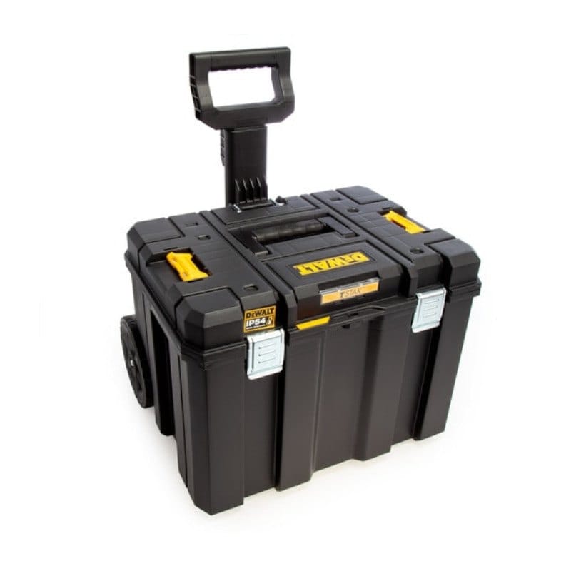 Χαρακτηριστικά για Dewalt DWST83347-1 TSTAK εργαλειοθήκη τροχήλατη Έχει πτυσσόμενη λαβή για εύκολη μεταφορά βαρέων εργαλείων. Κατασκευασμένος σύμφωνα με τα υψηλότερα πρότυπα για να εξασφαλίσει μεγάλη διάρκεια ζωής και αντοχή. Μεταλλικά κουμπώματα - αυξάνοντας τη δύναμη, την αντοχή και τη μακροζωία. Κλείδωμα με λουκέτου για πρόσθετη ασφάλεια. IP54 αντοχή στο νερό που παρέχει προστασία από νερό και σκόνη σε εργαλεία και εξαρτήματα στο εσωτερικό του κουτιού. Ανθεκτικοί τροχοί διαμέτρου 7".