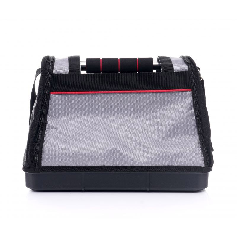 Η τσάντα εργαλείων, από την εταιρία Kraft&Dele, είναι κατασκευασμένη από ανθεκτικό πολυεστέρα και είναι σχεδιασμένη για την αποθήκευση και τη μεταφορά εργαλείων. Διαθέτει πολλαπλές εξωτερικές και εσωτερικές τσέπες, ρυθμιζόμενο ιμάντα ώμου, ενισχυμένη βάση και συμπαγής λαβή από αλουμίνιο με αντιολισθητικό μαξιλαράκι.