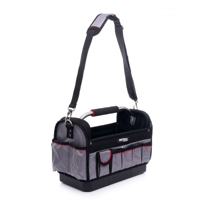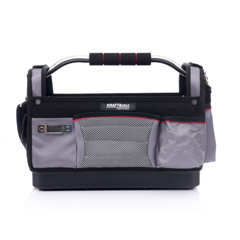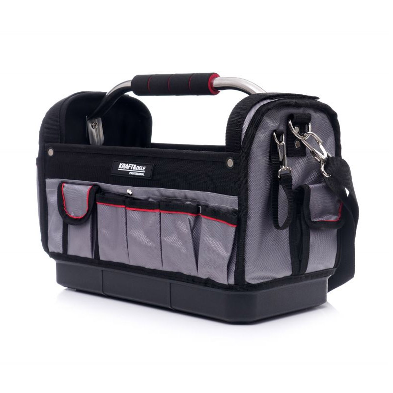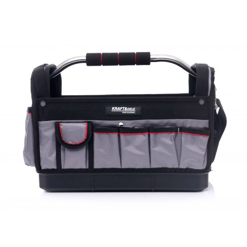 Η τσάντα εργαλείων, από την εταιρία Kraft&Dele, είναι κατασκευασμένη από ανθεκτικό πολυεστέρα και είναι σχεδιασμένη για την αποθήκευση και τη μεταφορά εργαλείων. Διαθέτει πολλαπλές εξωτερικές τσέπες, μεγάλο εσωτερικό χώρο, ρυθμιζόμενο και αφαιρούμενο ιμάντα ώμου, συμπαγής λαβή από αλουμίνιο με αντιολισθητικό μαξιλαράκι και ενισχυμένη βάση από ανθεκτικό υλικό.