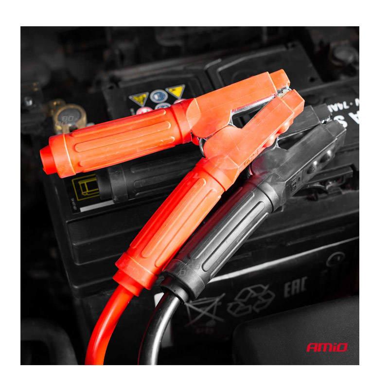 Τα καλώδια, από την εταιρία AMiO, προορίζονται για να βοηθήσουν στην εκκίνηση ενός οχήματος με αποφορτισμένη μπαταρία χρησιμοποιώντας το ρεύμα που αντλείται από την μπαταρία ενός άλλου οχήματος. Μια παχιά δέσμη χαλκού που περιέχεται κάτω από το περίβλημα του καλωδίου από καουτσούκ εξασφαλίζει αξιόπιστη και μέγιστη αγωγιμότητα ρεύματος. Μια ισχυρή λαβή στους σφιγκτήρες θα εξασφαλιστεί από συμπαγείς άκρες σε κάθε άκρο του καλωδίου. Συνοδεύονται από εύχρηστη θήκη, χάρη στην οποία θα βρίσκουν πάντα τη θέση τους στο πορτ-μπαγκάζ.