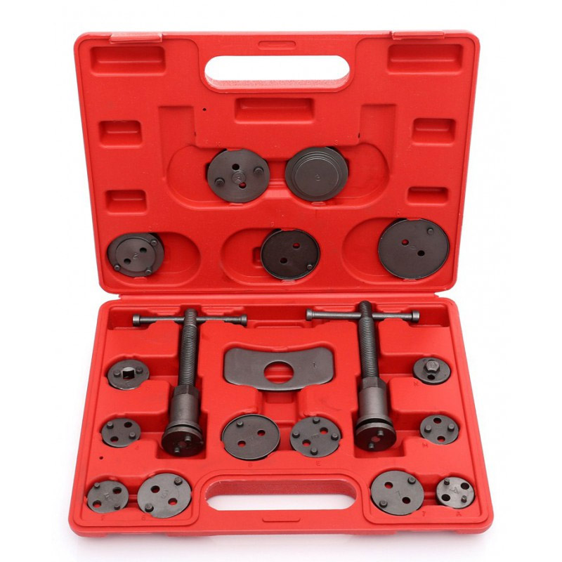 Το σετ επαναφοράς εμβόλων φρένων από την εταιρεία Kraft&Dele αποτελείται από 18 τεμάχια και είναι συμβατό με τις πιο δημοφιλείς μάρκες. Είναι ένα απαραίτητο εργαλείο αν θέλετε να αντικαταστήσετε τα τακάκια των φρένων. Χρησιμοποιώντας τα σύνεργα του σετ, αποφεύγετε τις φθορές στις φλάντζες. Συνοδεύεται από ανθεκτική, βαλίτσα μεταφοράς και αποθήκευσης.