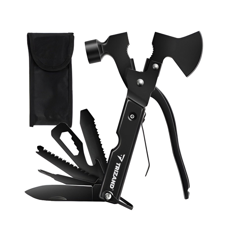 Το πολυλειτουργικό εργαλείο, από την εταιρία Trizand, διαθέτει έως και 17 ενσωματωμένα διαφορετικά εργαλεία με τα οποία μπορείτε να ανταπεξέλθετε κατά τη διάρκεια της επιβίωσης, του ψαρέματος, της πεζοπορίας, του κάμπινγκ, της κατασκήνωσης, της εργασίας ή απλώς κατά την κηπουρική. Το πολυεργαλείο περιλαμβάνει τσεκούρι, πένσα κλειδώματος, λίμα, ξύστρα ψαριού, κατσαβίδι με τρυπητή, εξάγωνο κλειδί, καμάκι, ανοιχτήρι μπουκαλιών, πριόνι ξύλου, κατσαβίδι Phillips, μαχαίρι τσέπης, σφυρί, κόφτη σύρματος, τσιμπίδα, πένσα, προφυλακτήρα και κλειδαριά. Διαθέτει προστασία με τη μορφή κλειδαριάς λαβής έναντι ανοίγματος και επιπλέον προστασία σιλικόνης για τη λεπίδα του τσεκούρι.