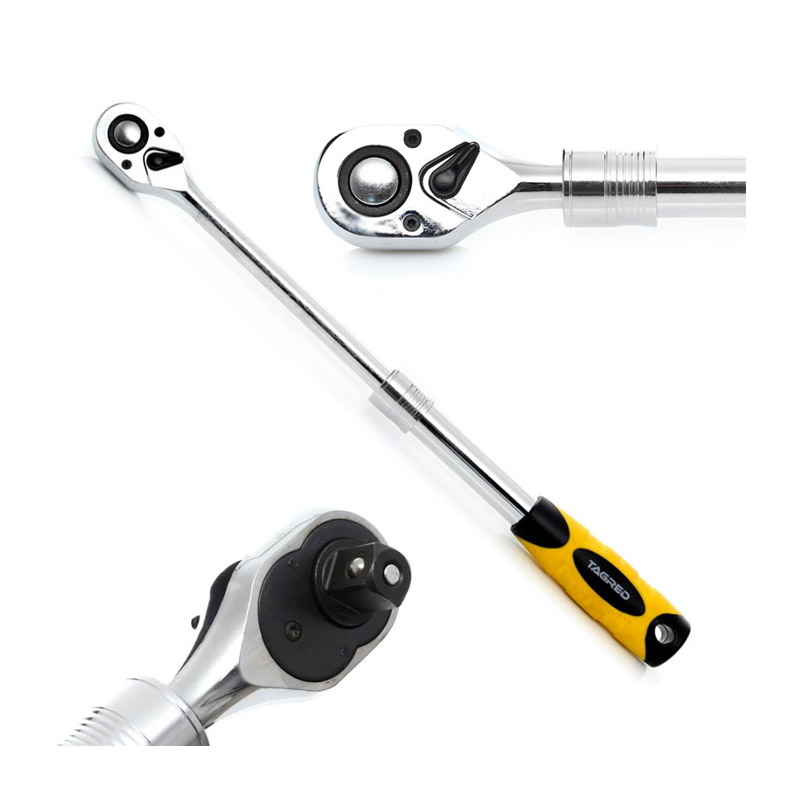 Η τηλεσκοπική καστάνια, από την εταιρία TAGRED, σε μέγεθος 1/2", είναι κατασκευασμένη από συμπαγές ατσάλι χρωμίου-βαναδίου που εξασφαλίζει υψηλή αντοχή. Διαθέτει 72 δόντια και δεξιόστροφη και αριστερόστροφη περιστροφή.