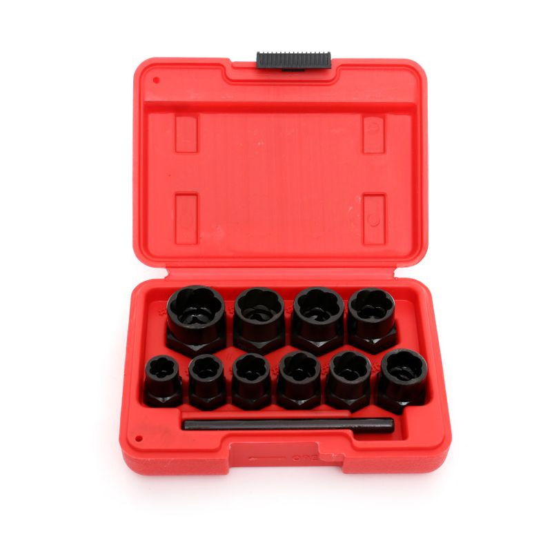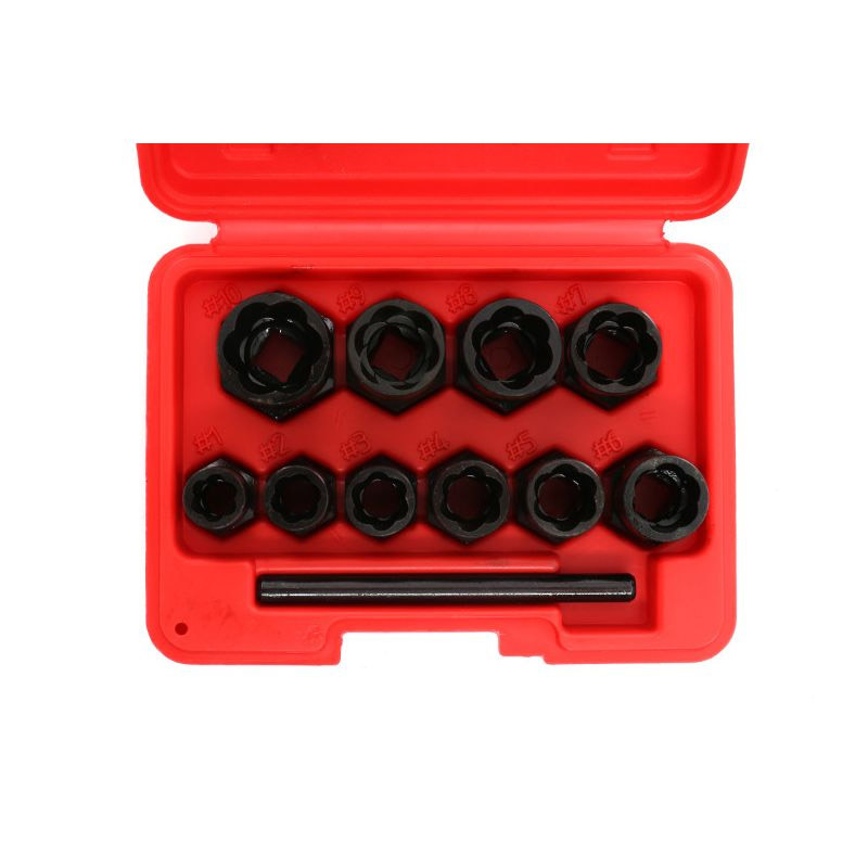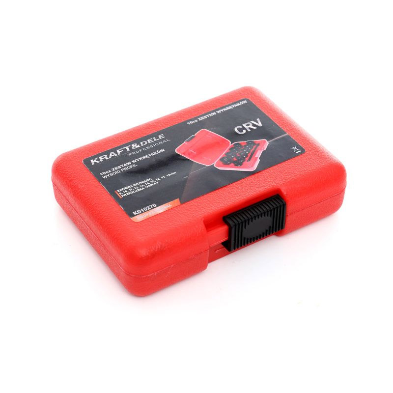 Το σετ από την εταιρεία Kraft&Dele αποτελείται από 10 εξωλκείς υψηλού προφίλ διαφορετικού μεγέθους και 1 επέκταση, κατασκευασμένα από ατσάλι CR-V, ανθεκτικά και κατάλληλα για την γρήγορη και εύκολη εξαγωγή χαλασμένων βιδών, παξιμαδιών ή μπουλονιών. Συνοδεύονται από πρακτικό βαλιτσάκι μεταφοράς και αποθήκευσης.