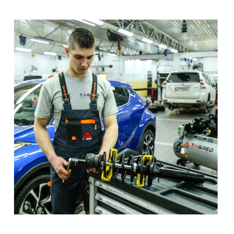 Το σετ, από την εταιρία TAGRED, έχει σχεδιαστεί για να συμπιέζει ελατήρια στα επιβατικά αυτοκίνητα. Μπορεί να χρησιμοποιηθεί σε αυτοκίνητα BMW, TOYOTA, MITSUBISHI, VW, AUDI, SAAB, NISSAN, HONDA, SUBARU, VOLVO, OPEL, PORSCHE. Όλα τα στοιχεία του σετ είναι κατασκευασμένα από πολύ ανθεκτικό χοντρό ατσάλι που μπορεί να αντέξει σε υψηλές δυνάμεις πίεσης. Το πλεονέκτημα αυτού του τύπου έλξης είναι η υψηλή δύναμη συμπίεσης που απλώνεται σε μια μεγάλη επιφάνεια, αποφεύγοντας έτσι ζημιά στα ελατήρια και τον κίνδυνο θραύσης του εξωλκέα.