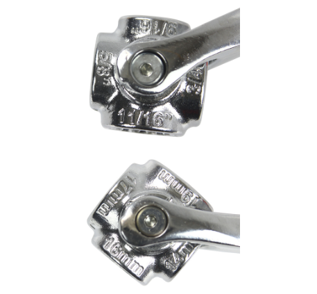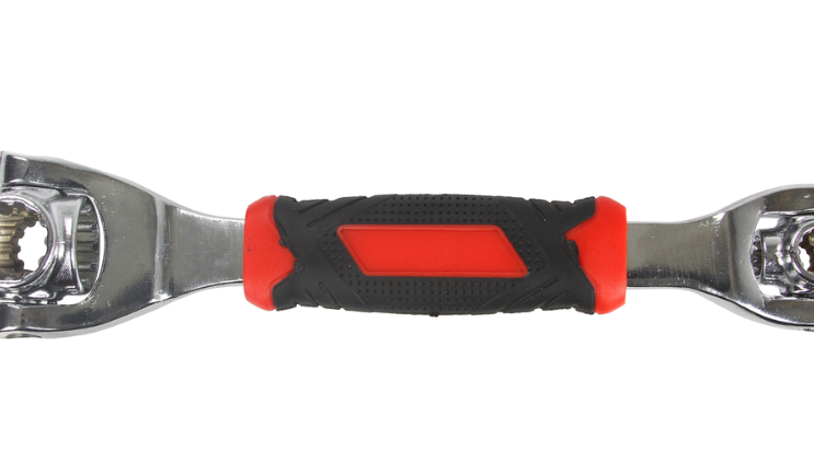 Οι περιστρεφόμενες κεφαλές με καστάνια και η λαστιχένια λαβή καθιστούν τη χρήση του πολυλειτουργικού κλειδιού εξαιρετικά άνετη – σας επιτρέπει να σφίγγετε βίδες ακόμα και σε δυσπρόσιτα σημεία.