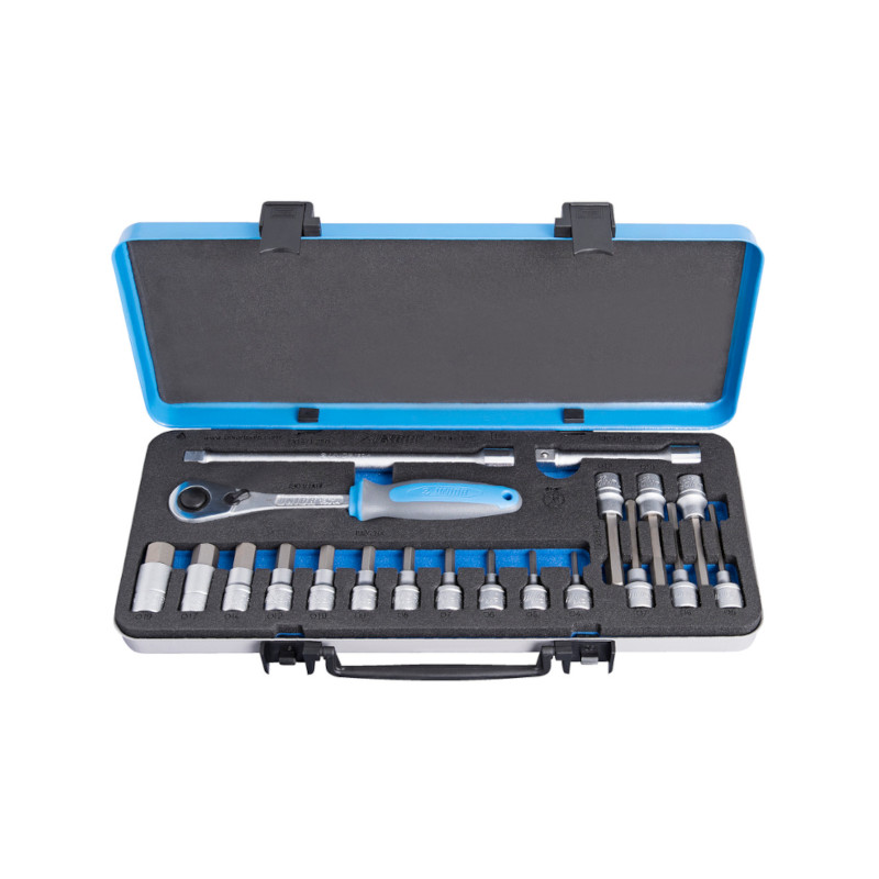 Το σετ καρυδάκια Unior 611946 αποτελεί μια υψηλής ποιότητας συλλογή για επαγγελματική χρήση σε συνεργεία, βιομηχανικές εφαρμογές και κάθε είδους τεχνικές εργασίες. Η Unior, γνωστή για την αξιόπιστη και ανθεκτική σειρά εργαλείων της, προσφέρει σε αυτό το σετ καρυδάκια 1/2" κατασκευασμένα από χάλυβα υψηλής αντοχής, με άριστη εφαρμογή και μακροχρόνια αντοχή στη χρήση. Το σετ συνοδεύεται από ανθεκτική μεταλλική κασετίνα, ειδικά διαμορφωμένη με θέσεις για κάθε καρυδάκι, ώστε να εξασφαλίζεται άριστη οργάνωση, ευκολία μεταφοράς και γρήγορη πρόσβαση κατά την εργασία. Τεχνικά Χαρακτηριστικά για Unior 611946 Συλλογή από Καρυδάκια: Τύπος: Σετ καρυδάκια 1/2" Υποδοχή: 1/2" τετράγωνη Υλικό: Χάλυβας Cr-V υψηλής αντοχής Κασετίνα: Μεταλλική, βαρέως τύπου, με διαμορφωμένες θέσεις Χρήση: Συνεργεία, μηχανουργεία, οχήματα, βιομηχανικός εξοπλισμός Ιδανικά για: Μπουλόνια, παξιμάδια, συντηρήσεις, γενικές μηχανολογικές εργασίες Ακριβής εφαρμογή: Για ασφαλή σύσφιξη χωρίς φθορά στα εξαρτήματα Το σετ περιλαμβάνει: 6x μακριά καρυδάκια allen 1/2", (article 192/2HXL) dim. 5x100, 6x100, 7x100, 8x100, 10x100, 12x100 11x καρυδάκια allen 1/2" (article 192/2HX) dim. 4, 5, 6, 7, 8, 9, 10, 12, 14, 17, 19 1x αναστρεφόμενη καστάνια ½" αξεσουάρ 1/2": 2x προεκτάσεις (125, 250 mm)