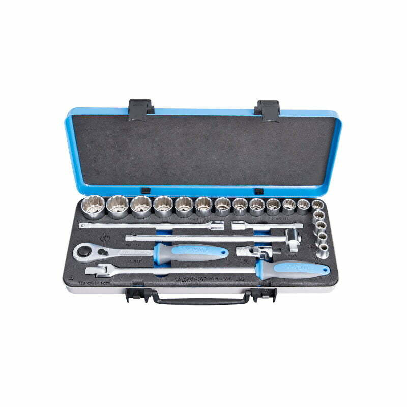 Unior 611943 Συλλογή από Καρυδάκια 1/2" Met.Kas. 23 ΤΕΜ 190BI12P23IN 17x socket 1/2", 12 point (article 190/1 12P) dim. 3/8", 7/16", 1/2", 9/16", 19/32", 5/8", 11/16", 3/4", 25/32", 13/16", 7/8", 15/16", 1", 1.1/16", 1.1/8", 1.3/16", 1.1/4" 1x reversible ratchet 1/2" accessories 1/2"; 1x swivel handle, 1x sliding T - handle, 2x extension bar (125, 250mm), 1x universal joint