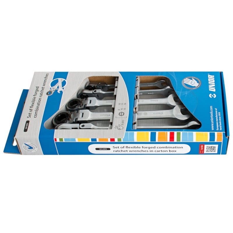 Unior 623710 Συλλογή Σπαστών Σφυρ/των Κλειδιών Καστάνιας σε Χαρ/νο Κουτί 161/2CS 6x flexible ratchet combination wrench (article 161/2) dim. 8, 10, 13, 15, 17, 19