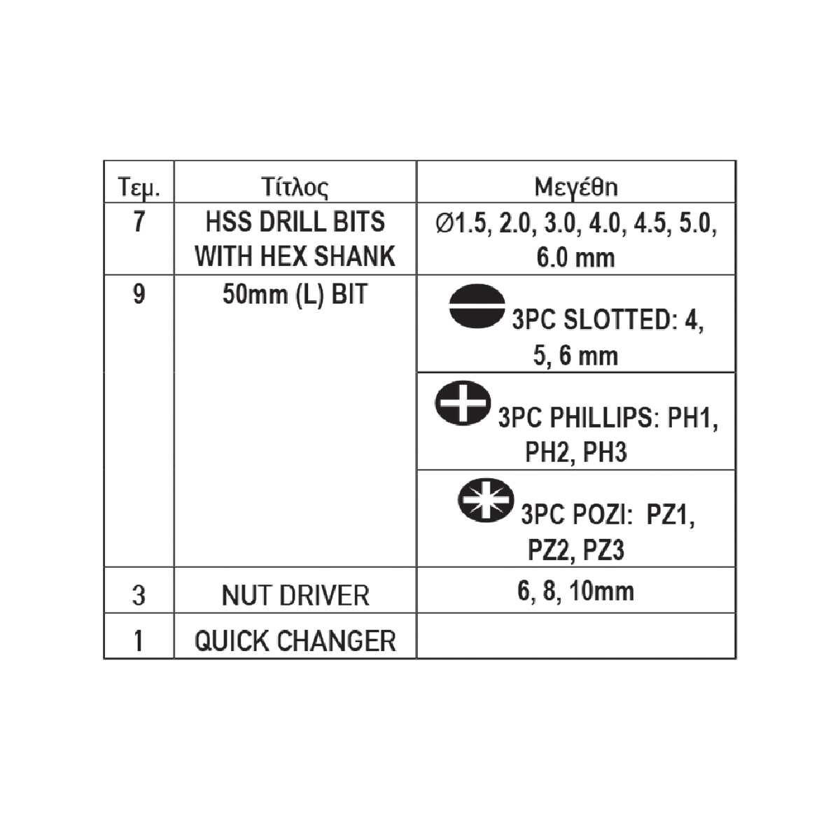 Εφαρμογή: UniversalΛαβή: 44287Διάμετρος: 1.5|2|3|4|4.5|5|6mm