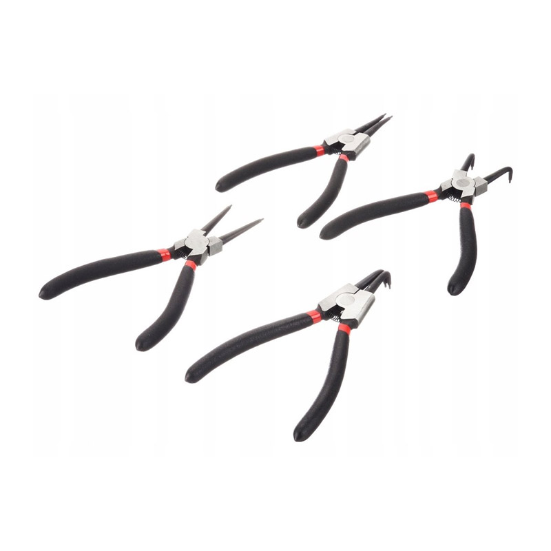 Το σετ, από την εταιρία TAGRED, αποτελείται από 4 τσιμπίδια ασφαλειών με διαφορετικές κεφαλές κατασκευασμένα από συμπαγή υλικά, κατάλληλα για διάφορες μηχανικές εργασίες.