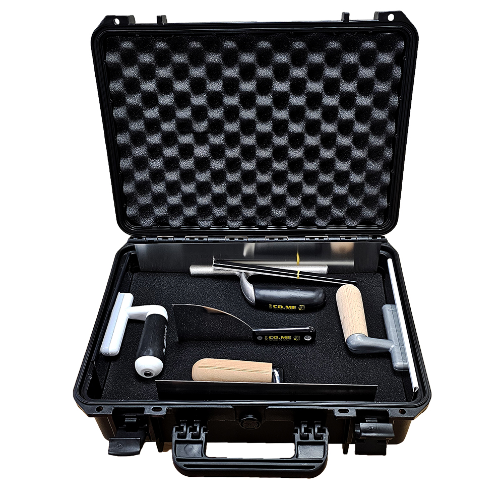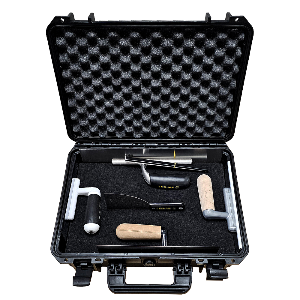 Το σετ με τις COMΕ σπάτουλες περιλαμβάνει 5 διαφορετικές σπάτουλες, όλες αποθηκευμένες σε μια πρακτική βαλίτσα. Είναι ιδανικό για επαγγελματίες αλλά και ερασιτέχνες που χρειάζονται αξιόπιστα εργαλεία για τη δουλειά τους.
