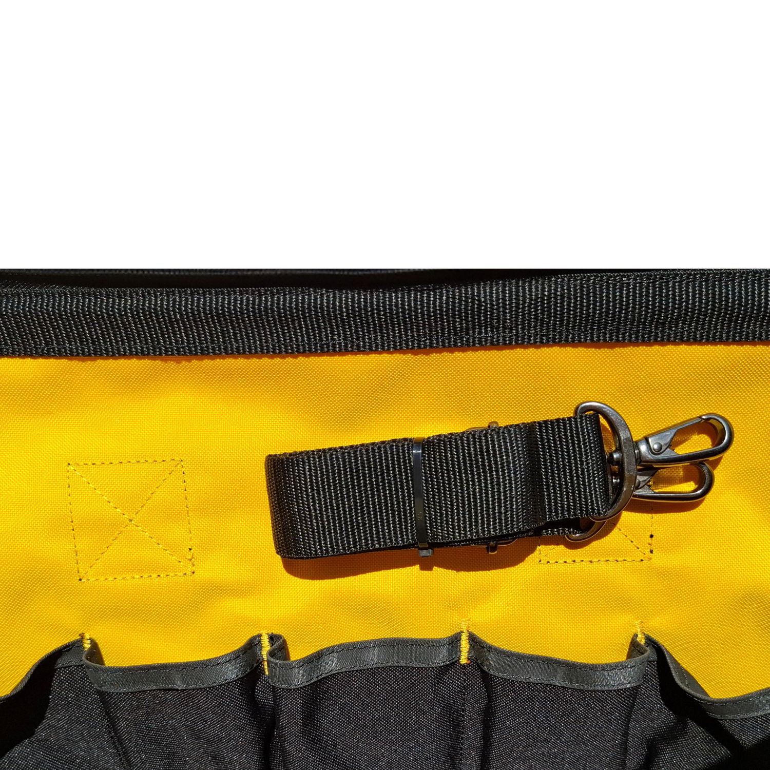 Η τσάντα εργαλείων χειρός CAT GP-65041 προσφέρει ευρύχωρη και ανθεκτική αποθήκευση για επαγγελματίες που χρειάζονται αξιόπιστο εξοπλισμό στον χώρο εργασίας. Με στιβαρή κατασκευή από πολυεστέρα 600D και επένδυση PVC, είναι σχεδιασμένη για αντοχή και καθημερινή χρήση. Διαθέτει μεγάλο κύριο διαμέρισμα, 10 εξωτερικές και 10 εσωτερικές τσέπες, προσφέροντας άριστη οργάνωση εργαλείων. Η ενισχυμένη λαβή και ο αφαιρούμενος ιμάντας ώμου εξασφαλίζουν άνετη και ευέλικτη μεταφορά.