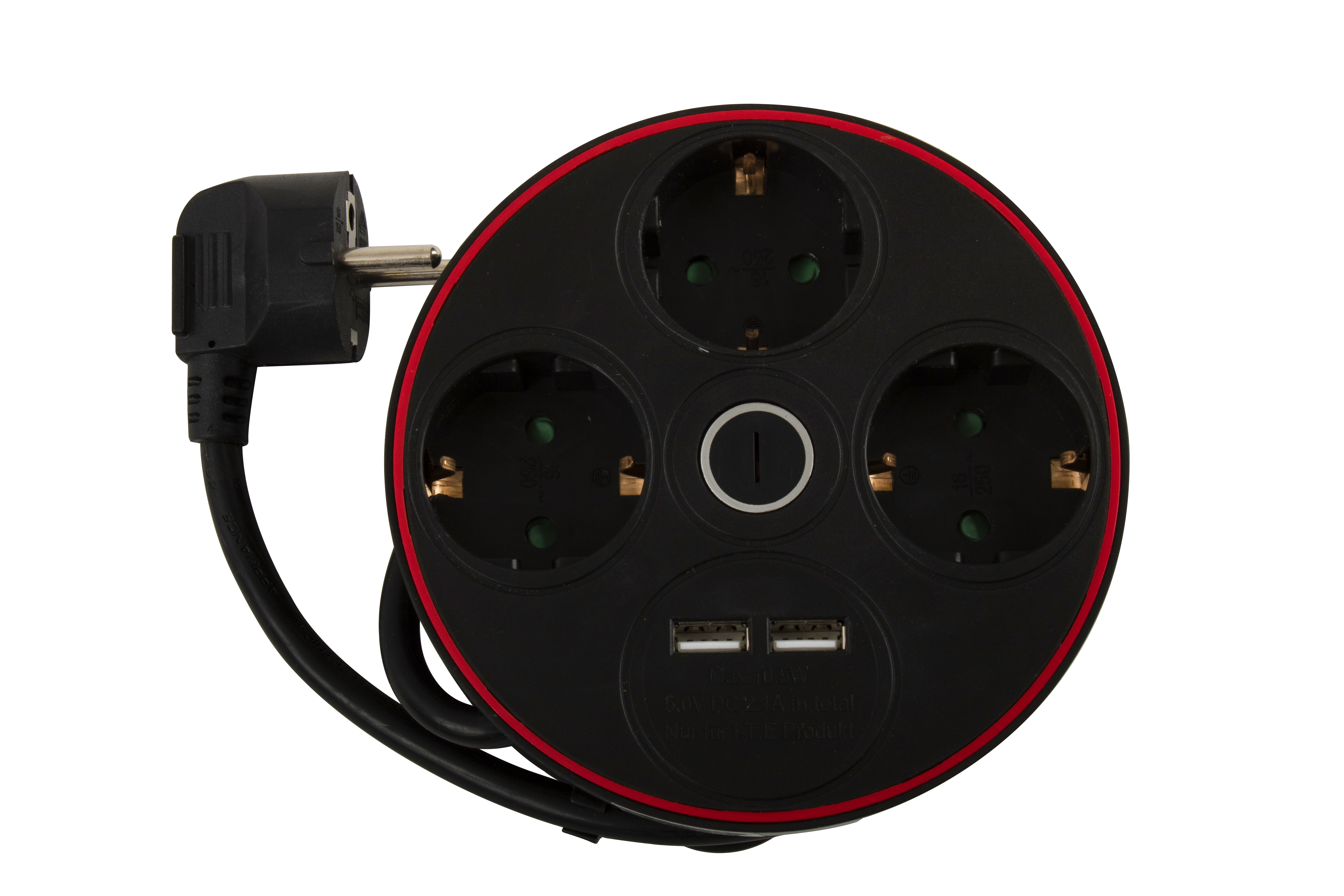 GEYER Πολύπριζο μαύρο με διακόπτη 3 θέσεις & 2xUSB GNBKU03/E