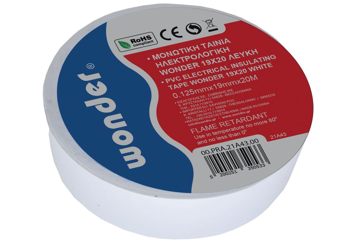 Ταινία μονωτική Wonder λευκή 19mmx20m