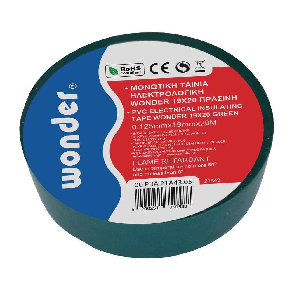 Ταινία μονωτική Wonder πράσινη 19mmx20m