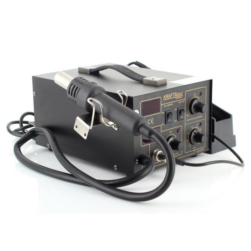 Η ηλεκτροκόλληση, από την εταιρία Kraft&Dele, είναι κατάλληλη για πλαστικές συγκολλήσεις. Διαθέτει ρύθμιση των υγρών της θερμοκρασίας του άκρου και ομαλή ρύθμιση της δύναμης και της θερμοκρασίας του αέρα εξαγωγής.