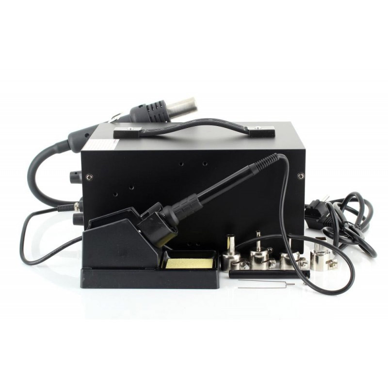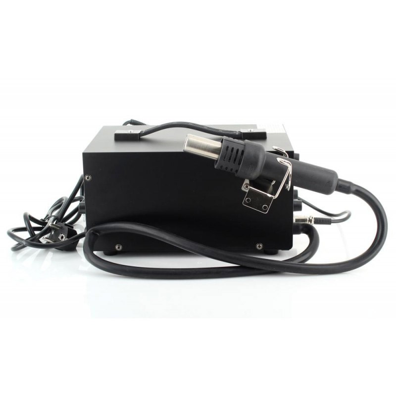 Η ηλεκτροκόλληση είναι εξοπλισμένη με ένα σύστημα που επιτρέπει την αυτόματη ψύξη μετά την ολοκλήρωση της εργασίας, η οποία βελτιώνει τη διάρκεια ζωής του θερμαντήρα. Η οθόνη LED που περιλαμβάνει, σας επιτρέπει να ελέγχετε τη θερμοκρασία του θερμού αέρα.
