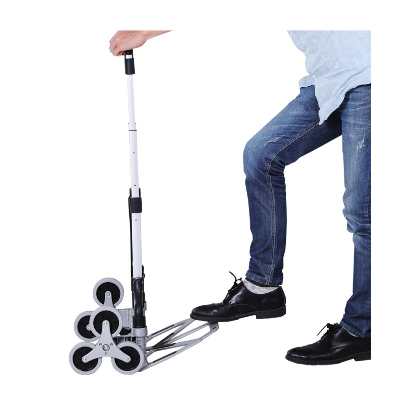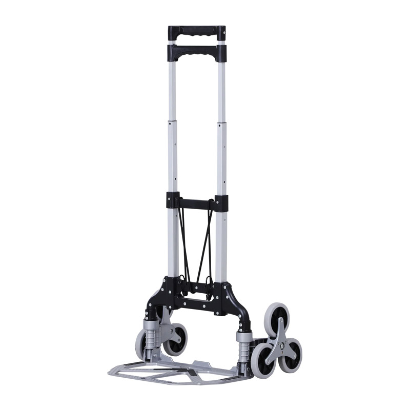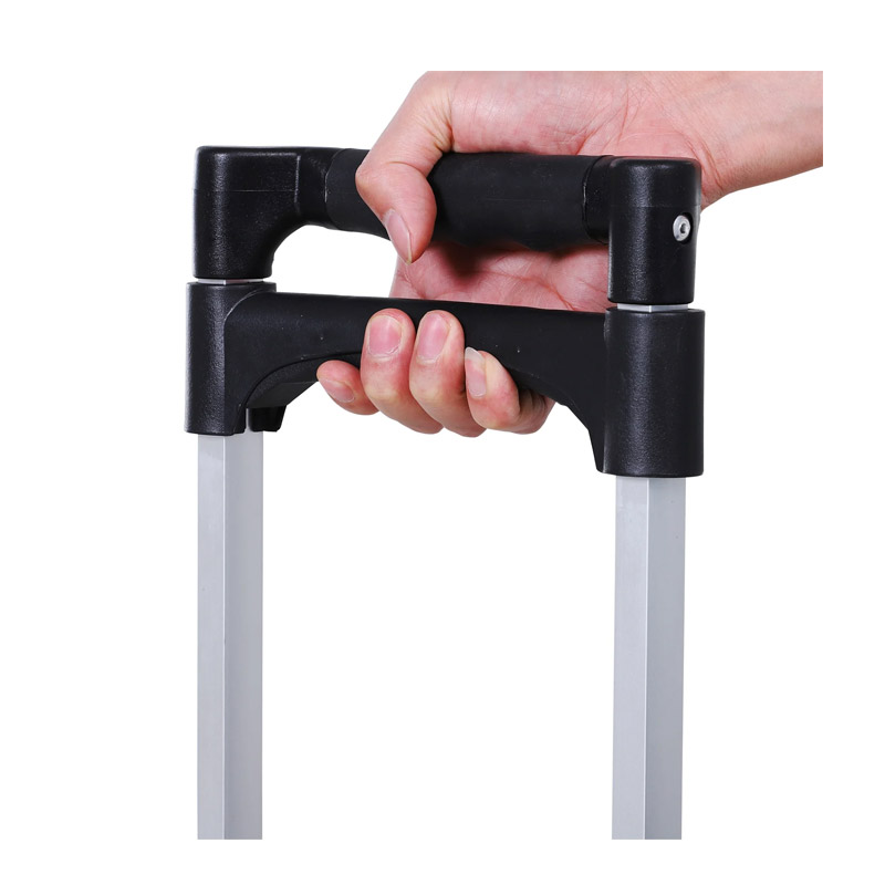 Το καρότσι είναι εξοπλισμένο με έξι συμπαγείς ρόδες, κατασκευασμένες από ισχυρό υλικό, εξασφαλίζοντας εξαιρετικό κράτημα. Το υλικό από το οποίο κατασκευάζονται εγγυάται ότι δεν θα σπάσουν κατά τη μεταφορά και ότι η δομή τους προσαρμόζεται τέλεια στην επιφάνεια. Η λαβή του είναι πτυσσόμενη και έχει καλυφθεί με αντιολισθητικό υλικό, διευκολύνοντας τον χειρισμό του.