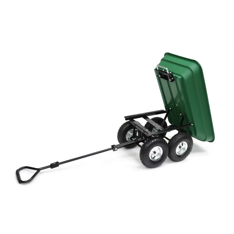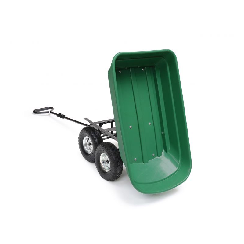 Το καρότσι κήπου, από την εταιρία Herzberg, θα σας βοηθήσει να μεταφέρετε και να ξεφορτώσετε βαριά αντικείμενα, γρήγορα και εύκολα. Διαθέτει πλαίσιο από επεξεργασμένο ατσάλι και ενισχυμένο πλαστικό κάδο με σύστημα ανατροπής και χωρητικότητας 52 Lt. Ο σχεδιασμός των 4 τροχών με αέρα (2 κατευθυντικοί), παρέχει ισορροπία και ομοιόμορφη κατανομή του βάρους που συγκρατεί το φορτίο. Η αφαιρούμενη λαβή με αντάπτορα θα σας επιτρέψει να τοποθετήσετε το καρότσι σε τρακτέρ ή ακόμα και στο αυτοκίνητό σας.