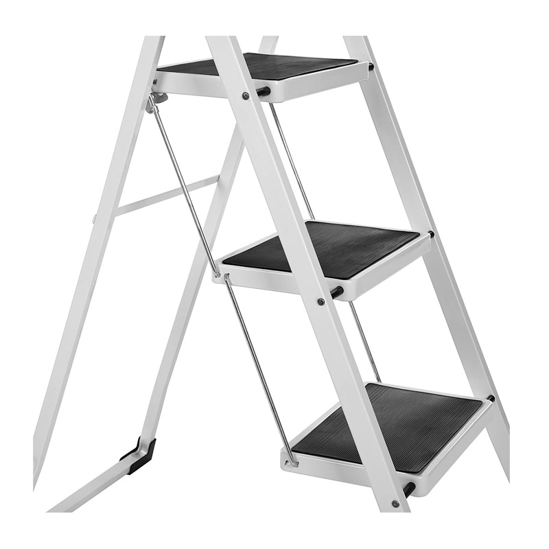 Η σκάλα, από την εταιρία Songmics, έχει πτυσσόμενο σχεδιασμό και είναι κατασκευασμένη από ατσάλι, με μέγιστο βάρος τα 150 Kg. Τα 4 πόδια έχουν φορά προς τα έξω για να υποστηρίζουν σταθερά τη σκάλα κατά τη χρήση. Το μάνδαλο ασφαλείας κλειδώνει αυτόματα όταν ανοίξει η σκάλα και εμποδίζει την κατά λάθος αναδίπλωση της. Τα σκαλοπάτια με αυλακώσεις και τα πόδια με προστατευτικά άκρα, αποτρέπουν την ολίσθηση και προστατεύουν επίσης τα δάπεδα από γρατζουνιές.