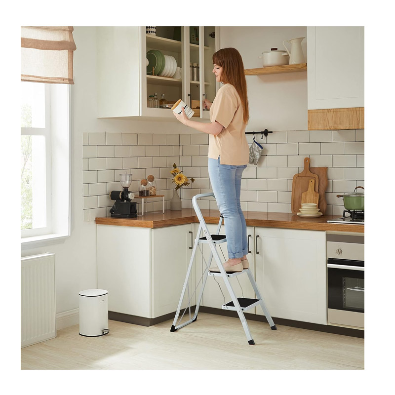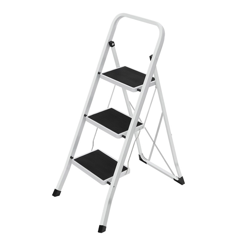 Η σκάλα, από την εταιρία Songmics, έχει πτυσσόμενο σχεδιασμό και είναι κατασκευασμένη από ατσάλι, με μέγιστο βάρος τα 150 Kg. Τα 4 πόδια έχουν φορά προς τα έξω για να υποστηρίζουν σταθερά τη σκάλα κατά τη χρήση. Το μάνδαλο ασφαλείας κλειδώνει αυτόματα όταν ανοίξει η σκάλα και εμποδίζει την κατά λάθος αναδίπλωση της. Τα 3 σκαλοπάτια με αυλακώσεις και τα πόδια με προστατευτικά άκρα, αποτρέπουν την ολίσθηση και προστατεύουν επίσης τα δάπεδα από γρατζουνιές.