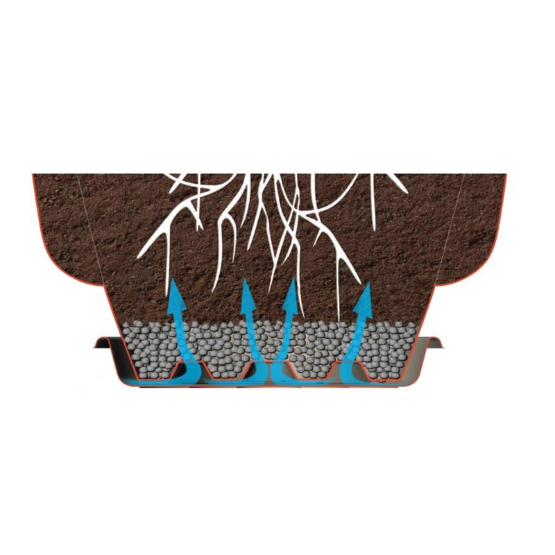Η γλάστρα, έχει μεγάλη χωρητικότητα 200 Lt και έχει μία κεντρική θέση για μεγάλο φυτό και έξι μικρότερες θέσεις περιμετρικά της κεντρικής για μικρότερα. Ο πάτος της είναι ειδικά σχεδιασμένος ώστε να εξασφαλίζει την σωστή οξυγόνωση του ριζικού συστήματος και τις ιδανικότερες συνθήκες αποστράγγισης με συνέπεια μικρότερη καταπόνηση και στρεσάρισμα των φυτών.