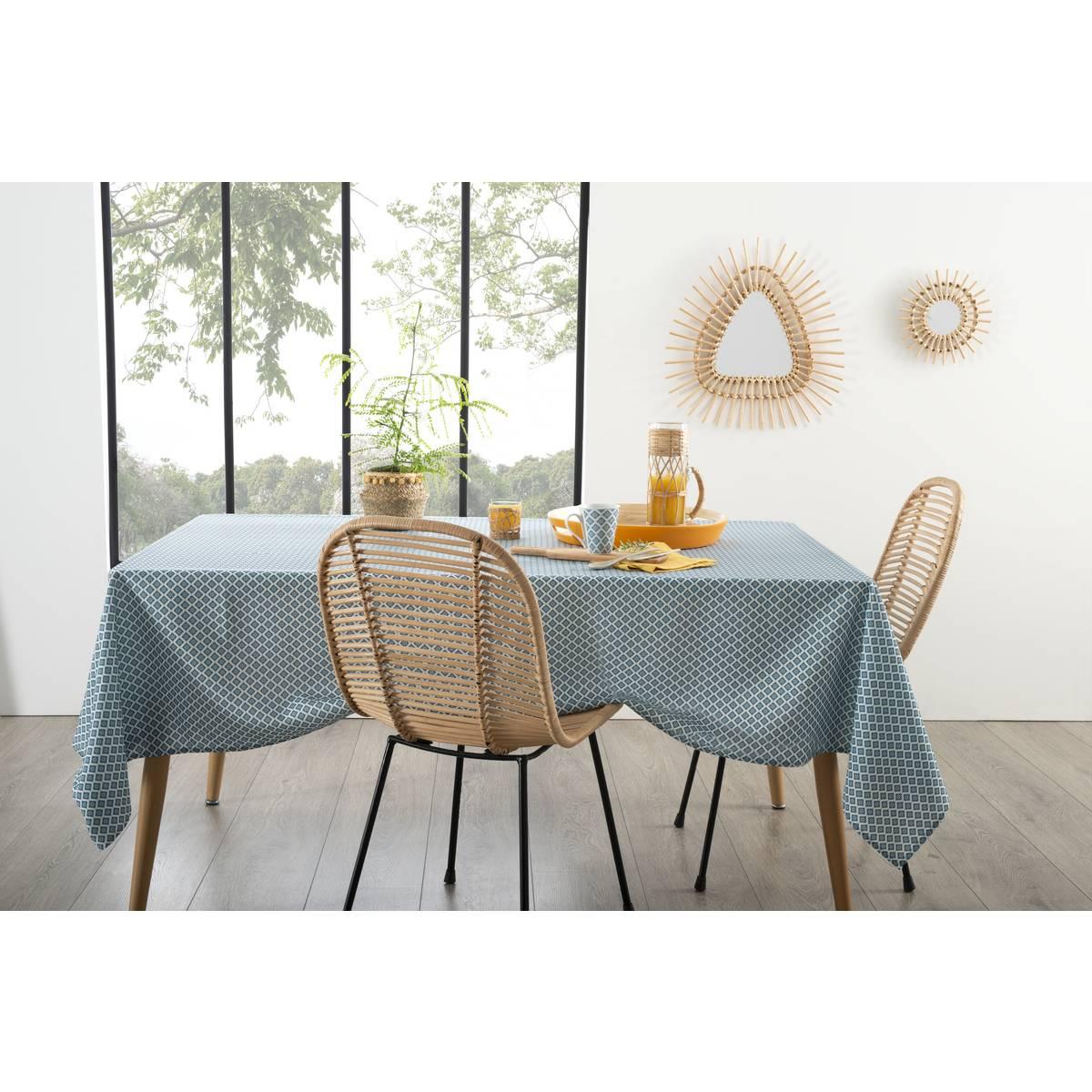 Ανανεώστε τον χώρο σας με το κομψό αυτό τραπεζομάντηλο, το οποίο διαθέτει μπλε φόντο με μοντέρνο λευκό σχέδιο. Κατασκευασμένο από 100% polyester, είναι εξοπλισμένο με μια αλέκιαστη επίστρωση που το καθιστά εξαιρετικά πρακτικό και εύχρηστο για την καθημερινότητά σας.