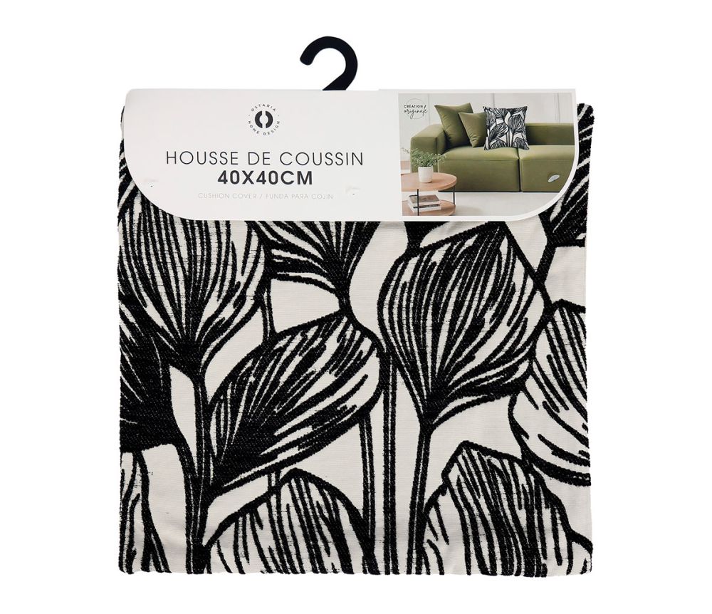 Ostaria Μαξιλαροθήκη τετράγωνη 'Togo' μαύρη και λευκή 40x40cm -37661
