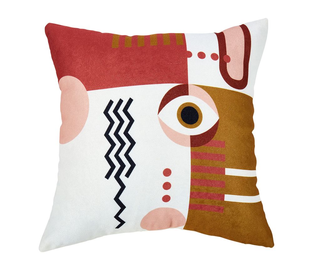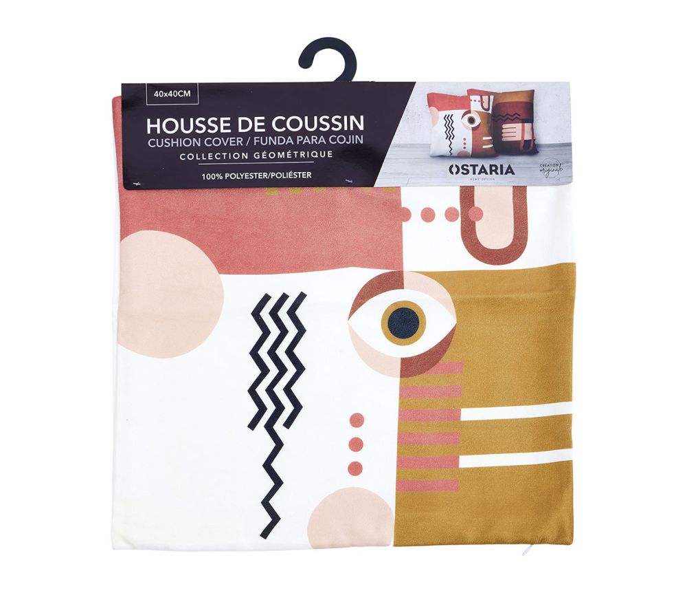 Τετράγωνη Μαξιλαροθήκη 'Μάτι' Πολύχρωμη από Πολυεστέρα σε Λευκό, Μουσταρδί και Τερακότα -45 x 45cm 36049 Ostaria