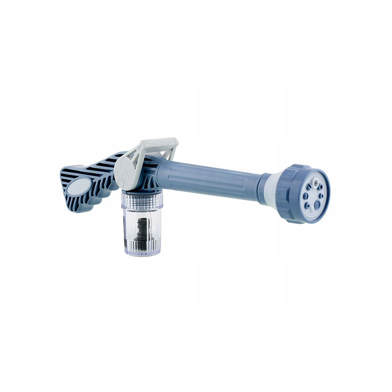 Το πιστόλι, διαθέτει 8 τρόπους ψεκασμού, ενσωματωμένο δοχείο σαπουνιού και διακόπτη 3 θέσεων που θα διευκολύνει την εργασία (αποκλεισμός, μόνο νερό, σαπουνόνερο από δοχείο).