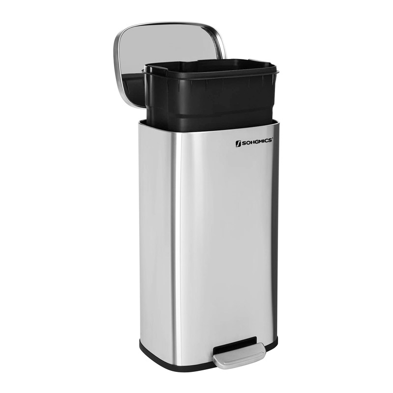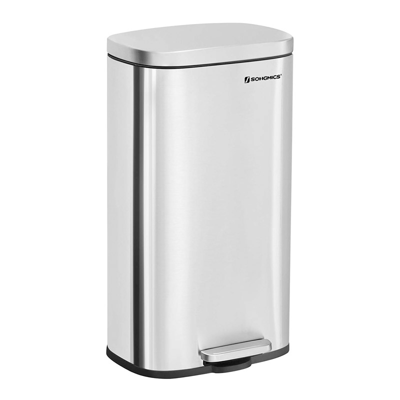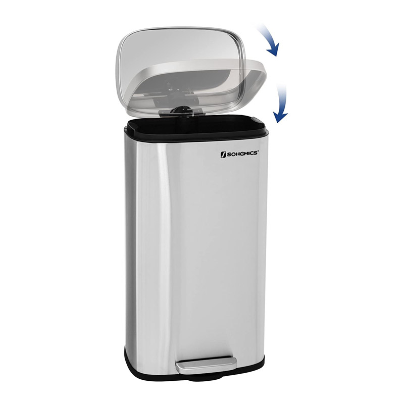Ο κάδος απορριμμάτων, από την εταιρία Songmics, είναι κατασκευασμένος από ατσάλι και έχει χωρητικότητα 30 Lt. Διαθέτει εσωτερικό πλαστικό κάδο, στον οποίο μπορείτε να τοποθετήσετε σακούλα και έχει μηχανισμό με αντιολισθητικό πεντάλ, ώστε η απόρριψη των απορριμμάτων να πραγματοποιείται με απολύτως άνετο και υγιεινό τρόπο. Το καπάκι του κάδου χάρη στο ενσωματωμένο σύστημα soft-close, κλείνει αργά και αθόρυβα.