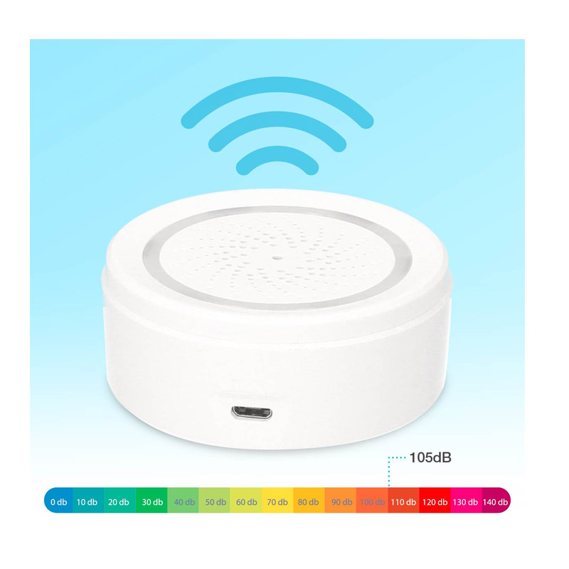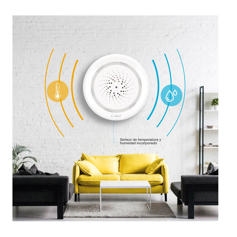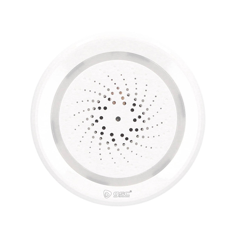 Ο αισθητήρας θερμοκρασίας και υγρασίας, από την εταιρία GSC, λειτουργεί με USB (περιλαμβάνεται καλώδιο) ή 2 μπαταρίες CR123 3V (δεν περιλαμβάνονται). Σας προσφέρει τη δυνατότητα να τον ελέγχετε μέσω Wi-Fi και διαθέτει 18 διαφορετικούς τόνους σειρήνας. Έχει εύκολη τοποθέτηση με αυτοκόλλητα ή βίδες.