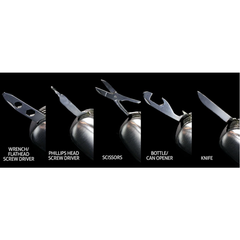 Πρόκειται για ένα Πολυεργαλείο – Φακό που θα μετατρέψει ακόμη και την πιο απλή σου βόλτα στην απόλυτη εμπειρία περιπέτειας και αδρεναλίνης. Γιατί; Επειδή πολύ απλά συνδυάζει 8 λειτουργίες σε 1 μόνο εργαλείο:
