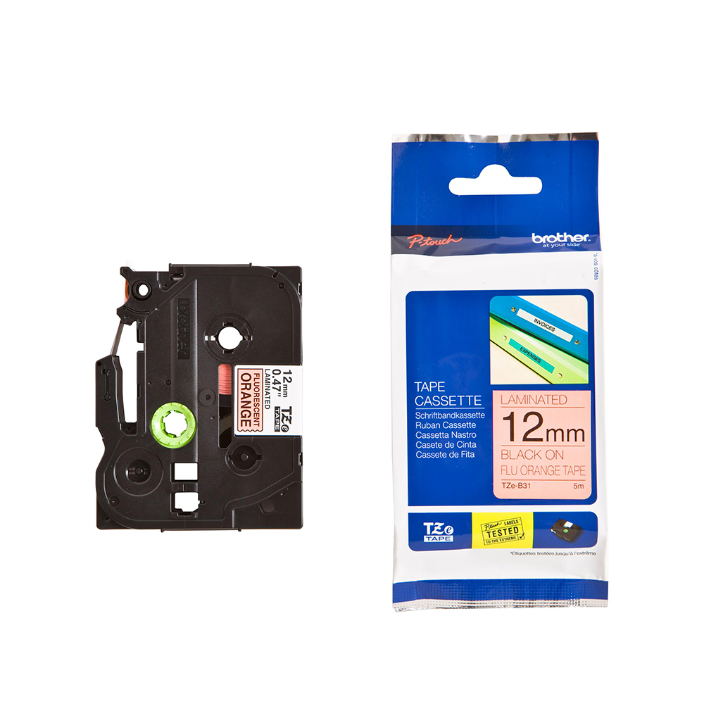 Brother P-Touch Laminated Black on Signal Orange 5m x 12mm (TZEB31) (BROTZEB31)