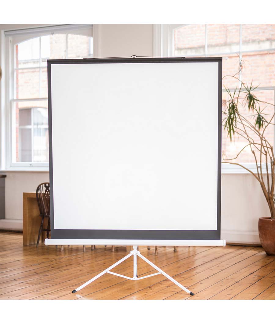 Μια οθόνη προβολέα που στεγάζεται σε μια λευκή ατσάλινη θήκη και τοποθετημένη σε βάση τριπόδου. Αυτή η ανεξάρτητη μονάδα μπορεί να συναρμολογηθεί γρήγορα τραβώντας την οθόνη προς τα πάνω και συνδέοντάς την στην ενσωματωμένη βάση. Η οθόνη απλώς ανασύρεται και η βάση αναδιπλώνεται για προστασία και αποθήκευση όταν δεν χρησιμοποιείται. Ιδανική λύση για εκπαιδευτικά περιβάλλοντα, επαγγελματικές παρουσιάσεις και χρήση οικιακού κινηματογράφου.Μονάδα όλα σε ένα, απλή συναρμολόγηση, εύκολη αποθήκευση όταν δεν χρησιμοποιείταιΤο μαύρο περίγραμμα ενισχύει τον ορισμό της προβαλλόμενης εικόναςΟμαλός μηχανισμός ανοίγματος & ανάσυρσηςΑνθεκτικό στη φλόγα και στο ιώδιοΧαρακτηριστικά: