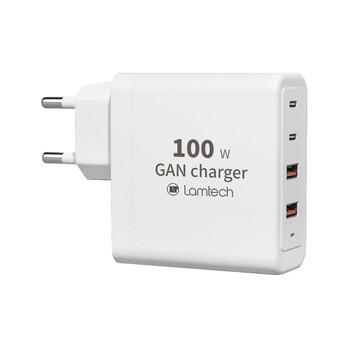 Lamtech Φορτιστής Χωρίς Καλώδιο GaN με 2 Θύρες USB-A και 2 Θύρες USB-C 100W Λευκός (LAM113416)