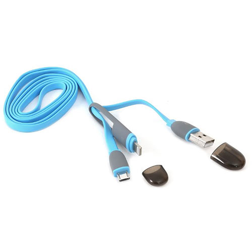 PLATINET USB UNIVERSAL CABLE 2 IN 1 MICRO USB & LIGHTNING PLUGS BLUE RETAIL PACK