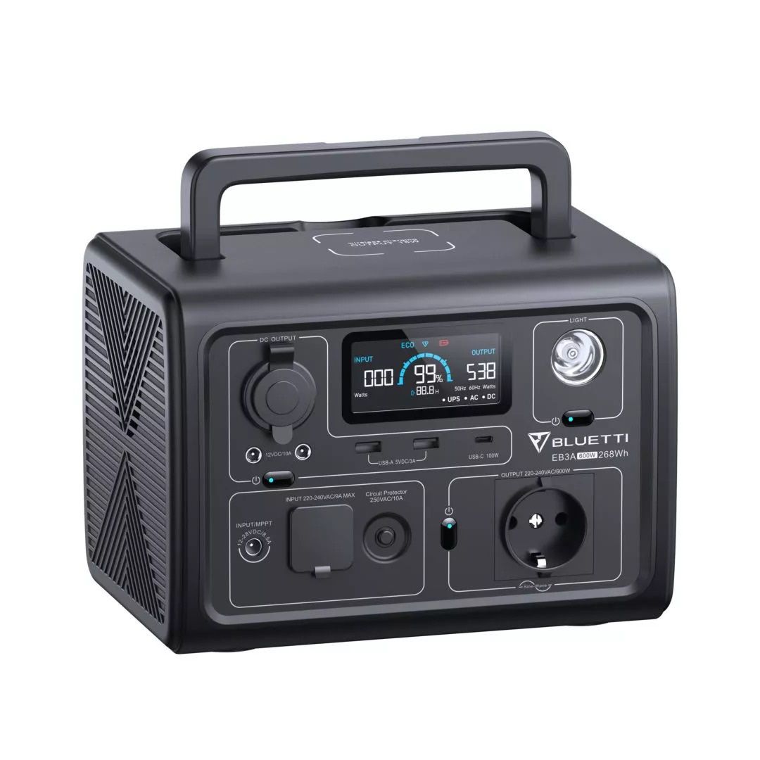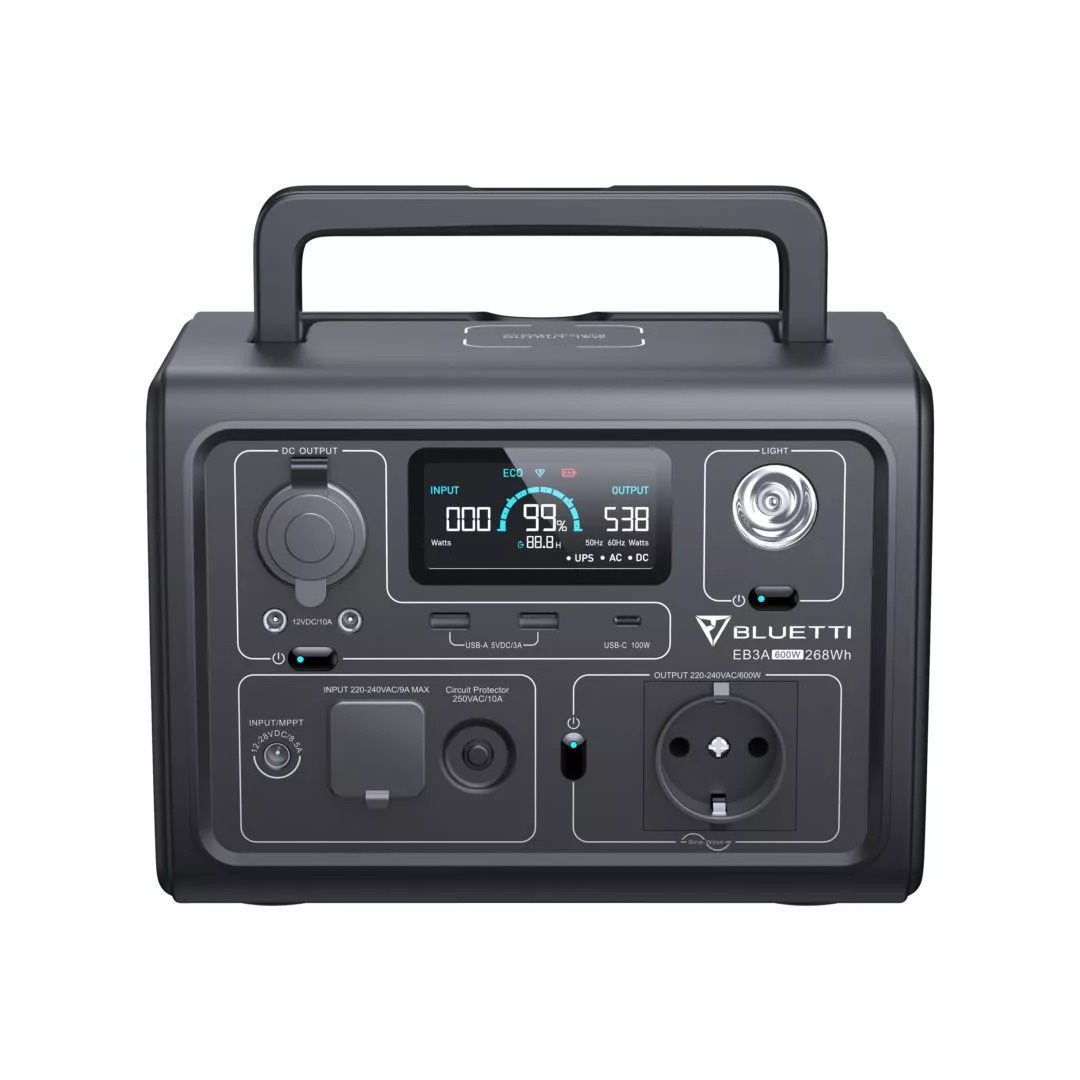 Designed to be more energy-efficient than traditional generators, BLUETTI EB3A is so light in terms of weight, doing its part to help you reduce carbon emissions to the environment. EB3A is compact enough, but you can count on it with big jobs. Whether it be small blender, mini rice cooker or small refrigerator, EB3A gets you all covered thanks to the 600W AC Pure Sine Wave Inverter (1200W surge) and an impressive 268Wh capacity.