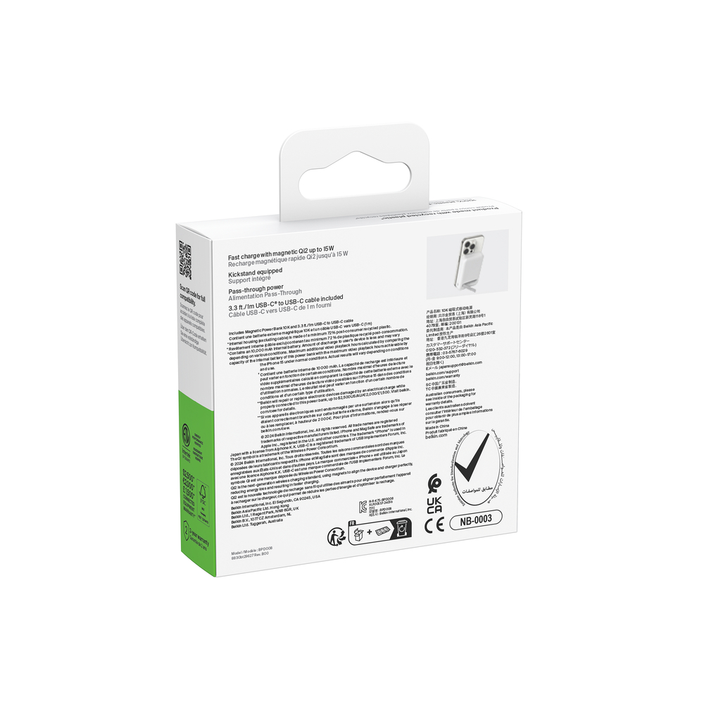 Το power bank διαθέτει την τελευταία και πιο σύγχρονη τεχνολογία ασύρματης φόρτισης, την Qi2. Αυτή η τεχνολογία, σε συνεργασία με την τεχνολογία MagSafe, χρησιμοποιεί ισχυρούς μαγνήτες για τέλεια ευθυγράμμιση, προσφέροντας ταχύτερη φόρτιση 15W και περισσότερη ισχύ από ποτέ. Επιπλέον, η Qi2 βελτιστοποιεί τη χρήση ενέργειας και προστατεύει τη διάρκεια ζωής της μπαταρίας της συσκευής σας.