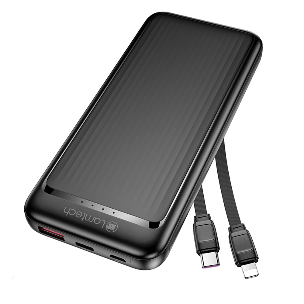 LAMTECH ULTRA-THIN POWERBANK WITH TYPE-C & LIGHTNING CABLES 10000mAh 22.5W BLACK
