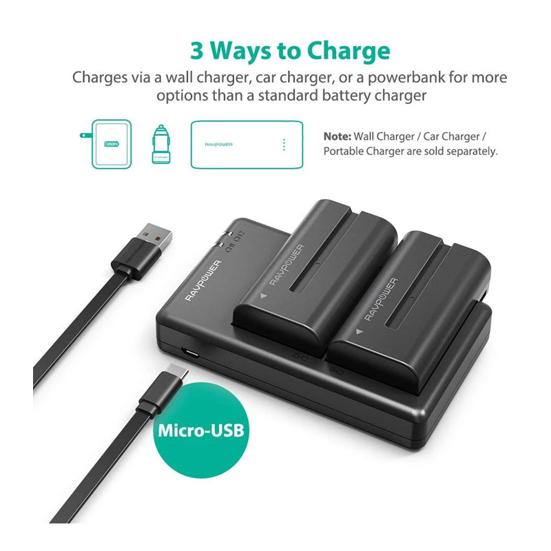 Σετ Επαναφορτιζόμενες Μπαταρίες Φωτογραφικών Μηχανών Sony 2900 mAh 7.2 V 2 τμχ RAVPower RP-BC006