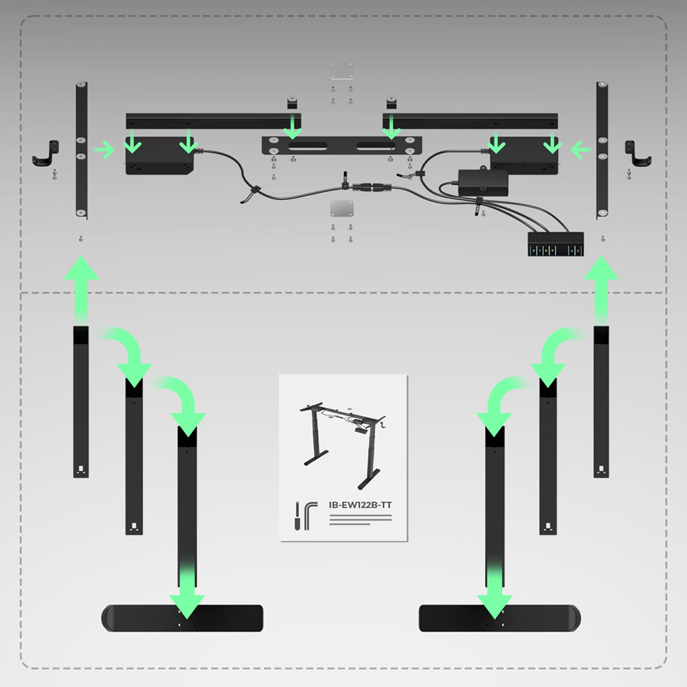 - Ηλεκτρική Ρύθμιση Ύψους Το ICY BOX Ergonomic Workstation είναι εξοπλισμένο με ηλεκτρικούς μηχανισμούς που επιτρέπουν την εύκολη ρύθμιση του ύψους του γραφείου με το πάτημα ενός κουμπιού, δίνοντάς σας τη δυνατότητα να περάσετε από καθιστή σε όρθια θέση χωρίς καμία δυσκολία.
