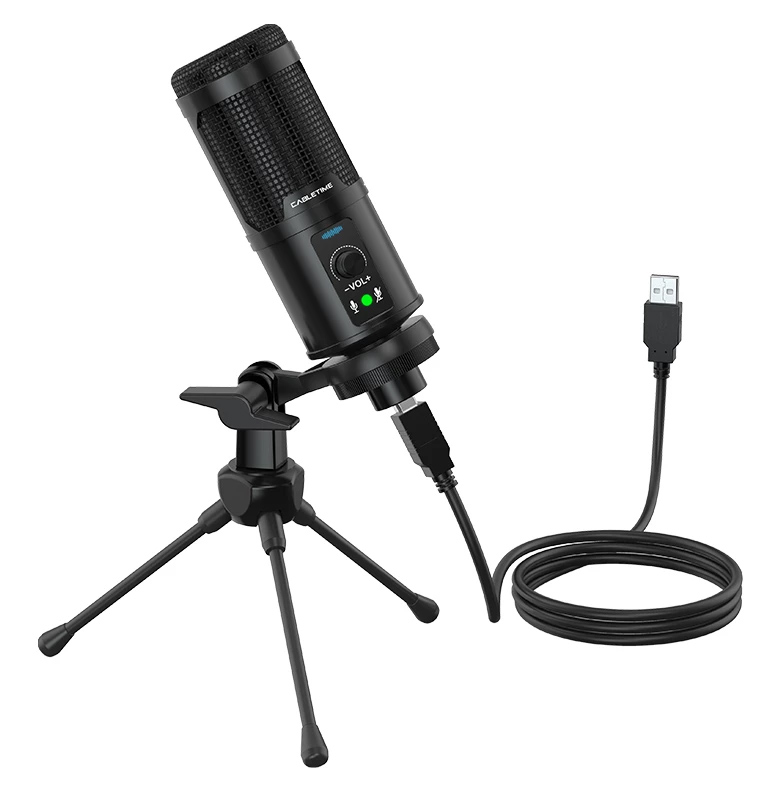 CABLETIME πυκνωτικό μικρόφωνο MP01-AB, με αντιανέμιο & τρίποδα, USB