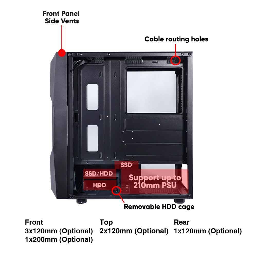 - Υποστηρίζει έως και 6 x 120mm ανεμιστήρες για ισχυρή ψύξη.